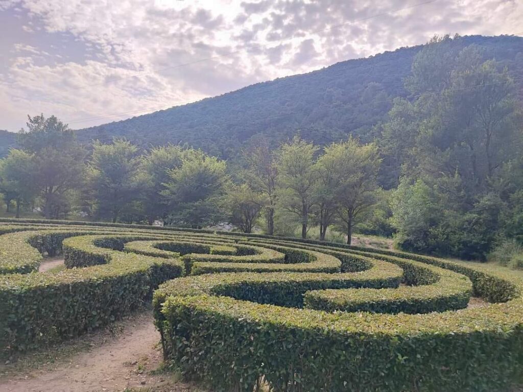 Megérkezünk, megnyugszunk. Pihenünk, fürdünk. Aztán második nap rádöbbenek, hogy egy szakrális hely mellett béreltem szállást. 8 perc autóval a Szerelmesek Babér Labirintusa. Úristen az a hely. Elmegyünk végigjárjuk, óriási tapasztalás. Onnan még felmentünk a magas hegyekben töltődni tovább.