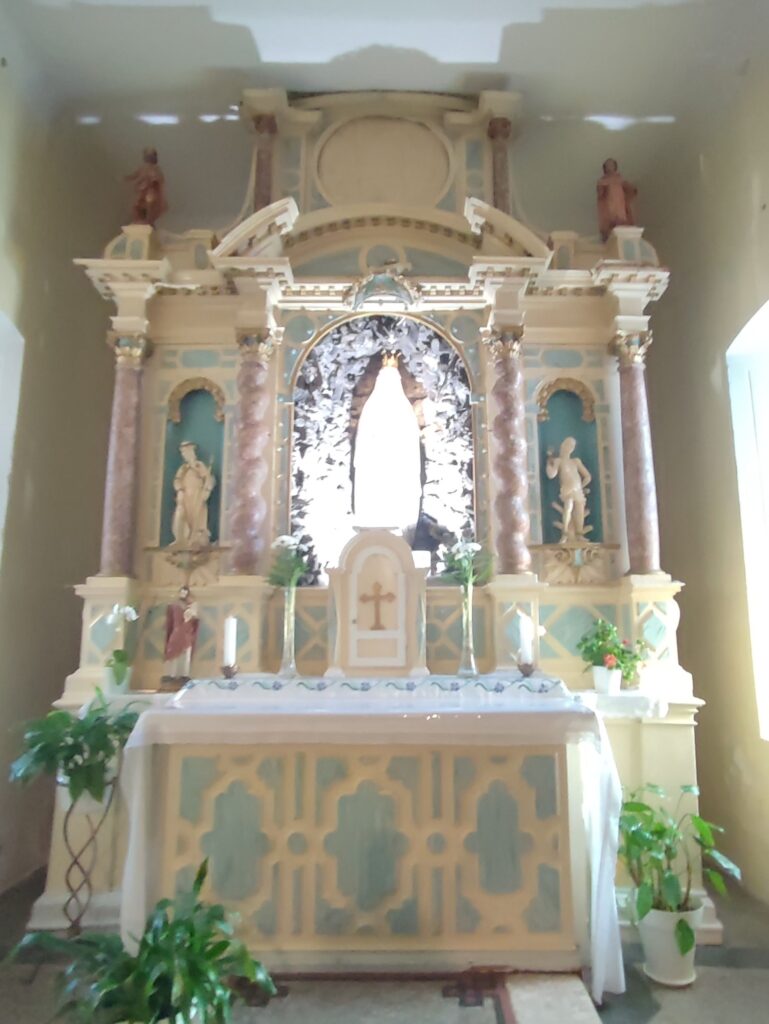 Egyedül vagyok, odabent leülök, nézem Boldogasszonyt, merengek, imádkozom picit. Aztán nézem mellette balon Jézust, jobbon Máriát a világító szívvel. Érzem nagyon hálás vagyok, csodás volt ez a nyaralás. Hálát adok, megosztom ezt az Istennekkel. Szív lángja elnevezésű Sárkány tőrömön merengek és Jézus-Mária ragyogó szívén. Mi lehet a kapcsolat? Aztán jön a szeretet szó…. Mi más? Ez az én védelmi eszközöm. Miután átadtam az örömeimet a templomban, odamegyek a főoltárhoz. Mondhatni lassan szokásos rituálémhoz a keresztre feszített Jézushoz elmondani a mantrámat: