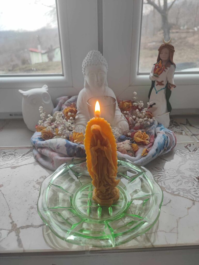 Érdemes lehet február 2-án (vagy az azt követő pár napban) megszentelni az éves gyertya és mécses készletünket. Én szeretem a folytonosságot, így az előző éves szentelt mécsesből/gyertyából megőrzök egyet. Köré rakom az új gyertyáimat, és meggyújtom a már tavaly megszentelt gyertyát/mécsest. Meggyújtás előtt kérem az Égi áldást, támogatást és fényt az idei évemre. Aztán elteszem a gyertyát, egy szép, erre a célra kinevezett hímzett tasakba.