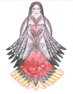 Kora tavasszal barátnőimmel debreceni otthonában meglátogattuk Nórit egy ismerkedő beszélgetésre, és akkor mutatta félkész Tündér kártyáit, aminek a képeit a helyszínen megnézegethettük. A Harkály tündér nagyon megfogott és Nóri annyira kedves volt, hogy utána át is küldte nekem pár másik lenyomattal együtt. Annyira zaklatott voltam, hogy elsőnek Nórira írtam, hogy itt van egy vérző harkály a szobámban és nem tudom mi van velem, de mindjárt sírok, és segítsen nekem azzal, hogy megírja mi a Harkály Tündér üzenete. Visszaírt pár percen belül, ami annyira szép és nemes, hogy megosztom szó szerinti idézésben: