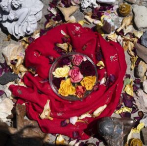 A Rózsa az egyik legősibb szakrális növényeink egyike. A vénuszi szépség megtestesítője. Áthatja a Mária Misztérium energiája, mely a női hatalommal, papnői minőségeivel van összefüggésben. Bódító illata a szerelem édességét, puha, sejtelmesen elhelyezkedő szirmai a női öl titokzatosságát sugallja, sokszínűsége és formagazdagsága a nőiesség sok arcára mutat tükröt, míg a tüskéi a szerelemben és a női hatalomban megjelenő veszélyeket és fájdalmakat mutatja meg.